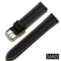 【バンビ】ラバーコーティング カーフ 2コブ 白ステッチ 時計ベルト BCE046
